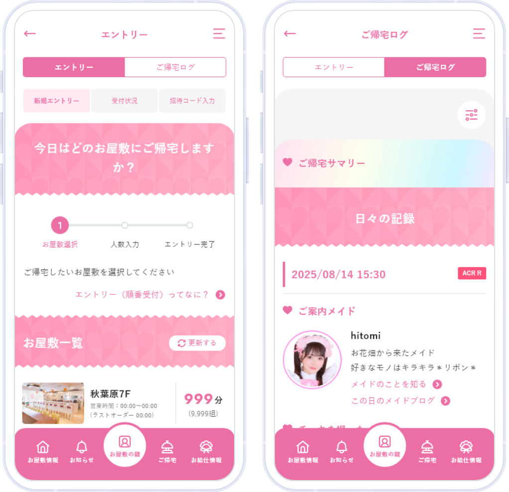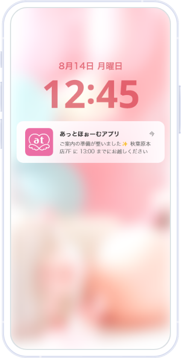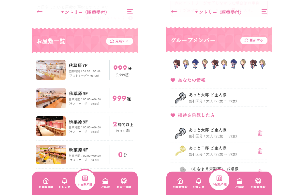 - お呼び出し方法は「お屋敷でエントリー」いただいた方は入力いただいたメールアドレス宛に、アプリ会員の方はプッシュ通知でお知らせします。